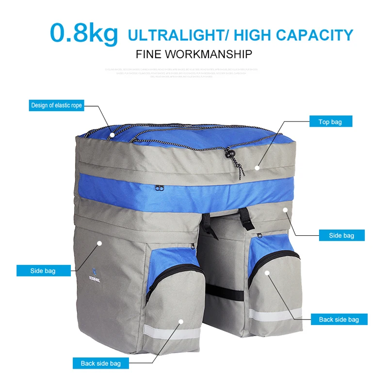 Ideal Roswheel 60L Bicycle Bag Black Blue Red Double Bicycle Rear Seat Rack Trunk Bag with rain cover Han