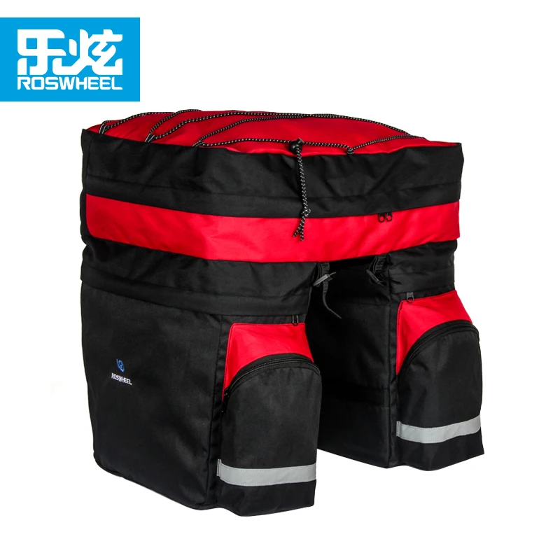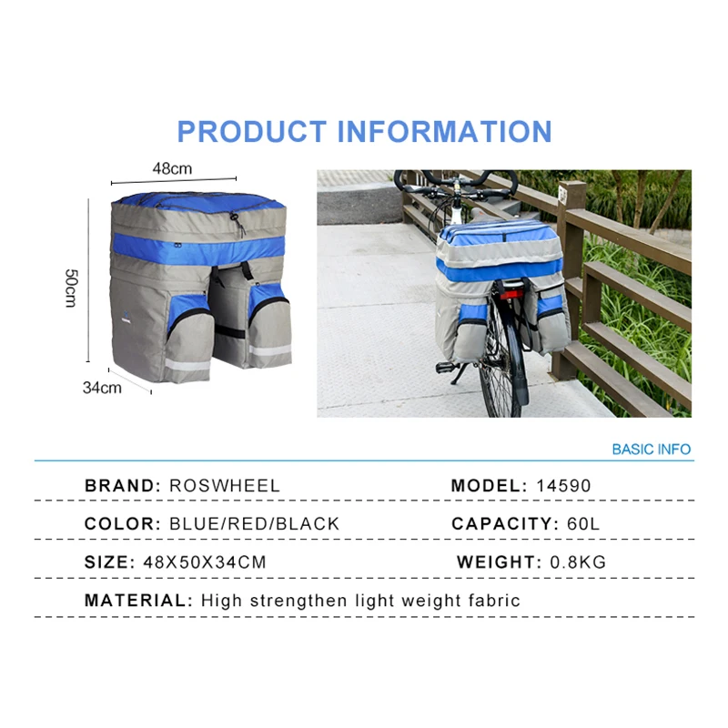 discounted Roswheel 60L Bicycle Bag Black Blue Red Double Bicycle Rear Seat Rack Trunk Bag with rain cover Han