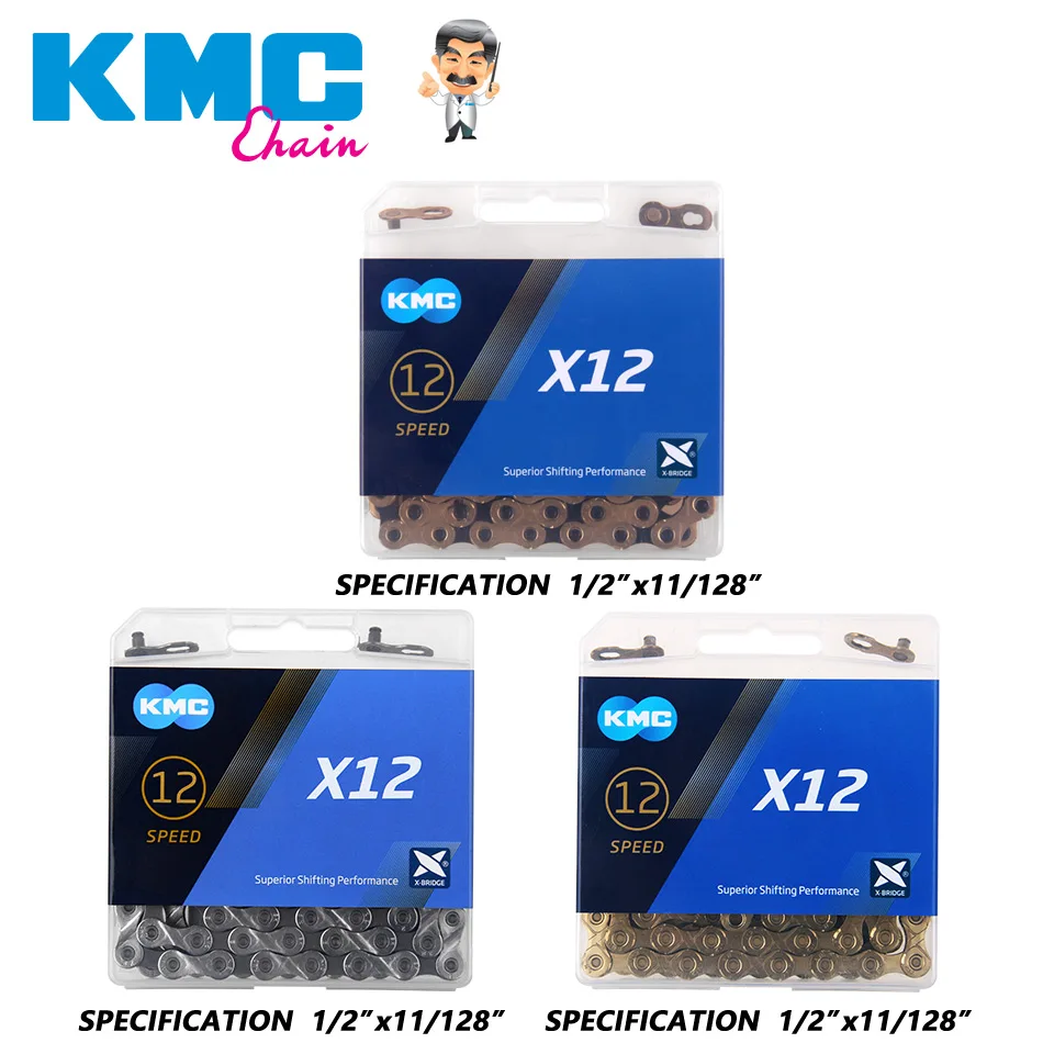 Greatest KMC X12 12 speed 126L Mountain Bike Bicycle Chain GOLD Black-Gold Silver and Magic Button for MTB/R